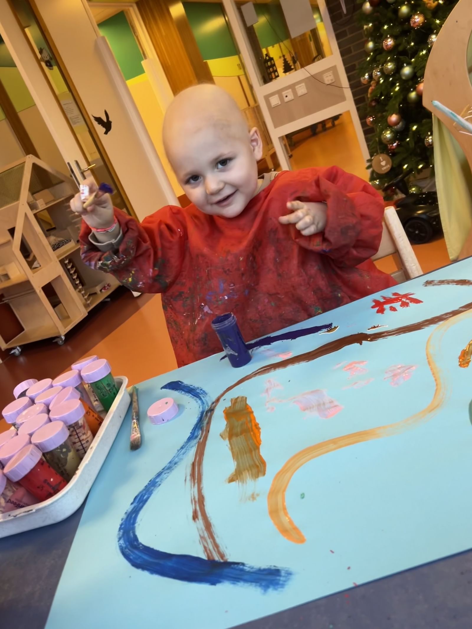 Ivy heeft een goed behandelbare vorm van leukemie, waarbij de genezingskans groot is. Het eerste half jaar volgt een intensief traject met twee keer in de week chemo. ‘Dat kale koppie vind ik toch wel heel confronterend’, vertelt Manon terwijl ze door haar fotogalerij scrolt. ‘Dan denk ik ook: kind, wat heb je toch allemaal meegemaakt en wat heeft je lichaam allemaal moeten doorstaan. Gelukkig is een kind heel veerkrachtig.’ Daarna volgt de onderhoudsfase van anderhalf jaar met één keer in de maand chemo in Utrecht en één keer in de maand bloedcheck in Deventer.
