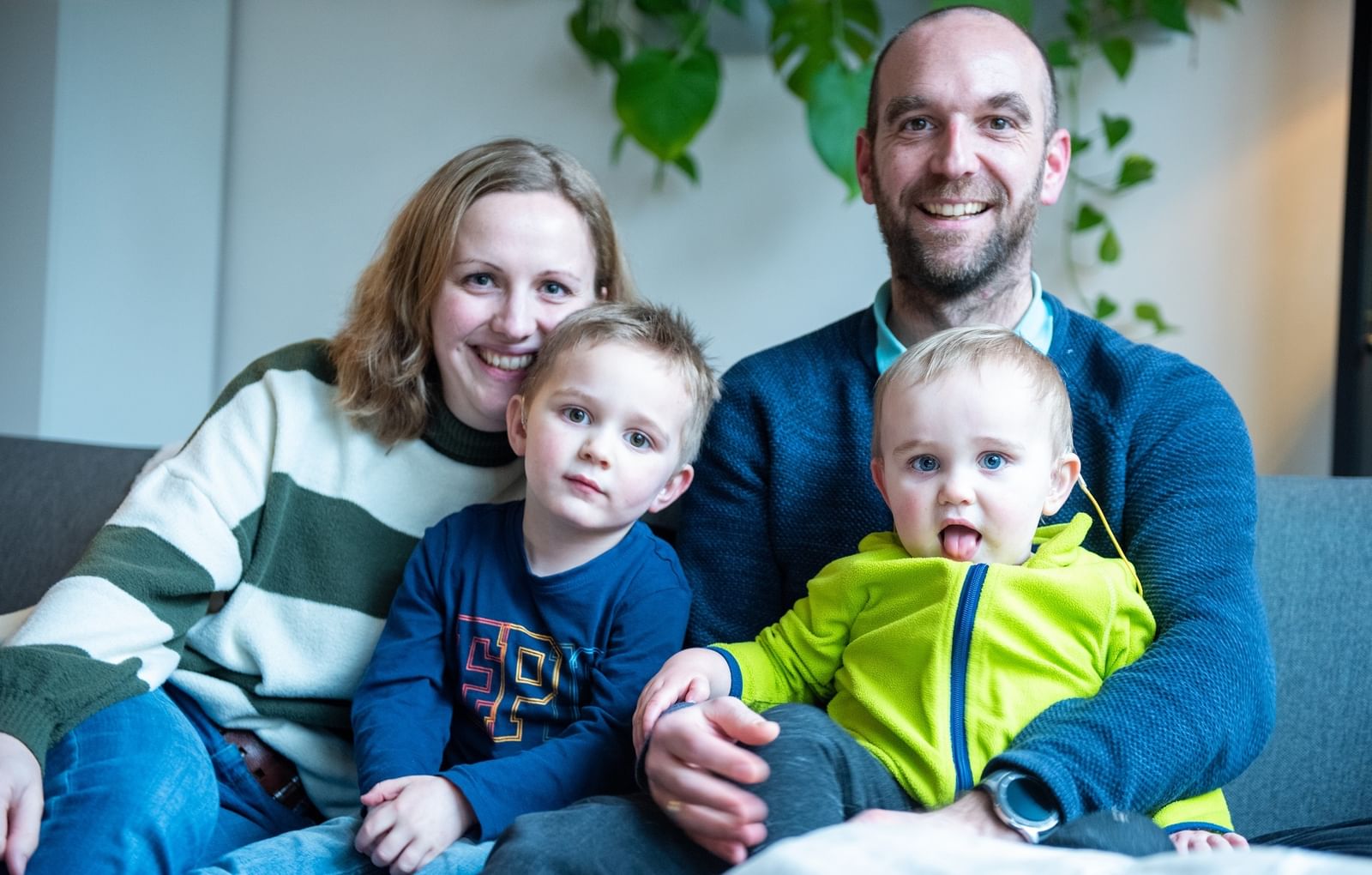 Hanna: ‘Er komt ontzettend veel op ons af: logopedie, gebarentaal cursus, welke basisschool? Laurens heeft nu ruim een half jaar zijn gehoorapparaten in. In het begin kreeg hij te veel prikkels binnen, waardoor hij helemaal niks meer zei. Hij is gestart met logopedie en heeft zijn oortjes – na een aantal maanden – helemaal omarmd. ‘’Het zijn mijn vriendjes’’, zegt hij dan. De laatste twee maanden boekt hij ontzettend veel vooruitgang op taal en hoeft hij waarschijnlijk niet naar het speciaal onderwijs. Verder krijgen we begeleiding thuis, hoe we op de juiste manier de taal kunnen aanleren, maar ook hoe we moeten omgaan met deze situatie.'