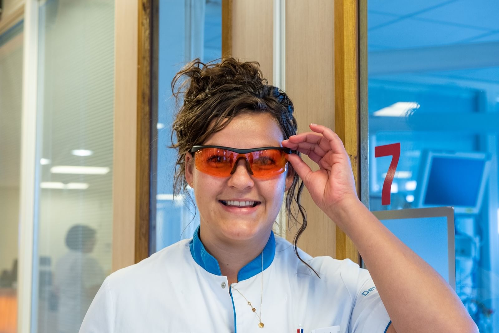 Behalve slapen op het werk, starten ze ook met nachtdienstbrillen. De speciale somnoblue brillen kunnen ná de nachtdienst gebruikt worden. De oranje brillen weren blauw licht en verbeteren de kwaliteit van je slaap. De bril kan ongeveer een half uur voor het slapen (thuis) gedragen worden. Jannie: ‘De bril zorgt ervoor dat je melatonine aanmaakt, waardoor je beter kunt slapen.’