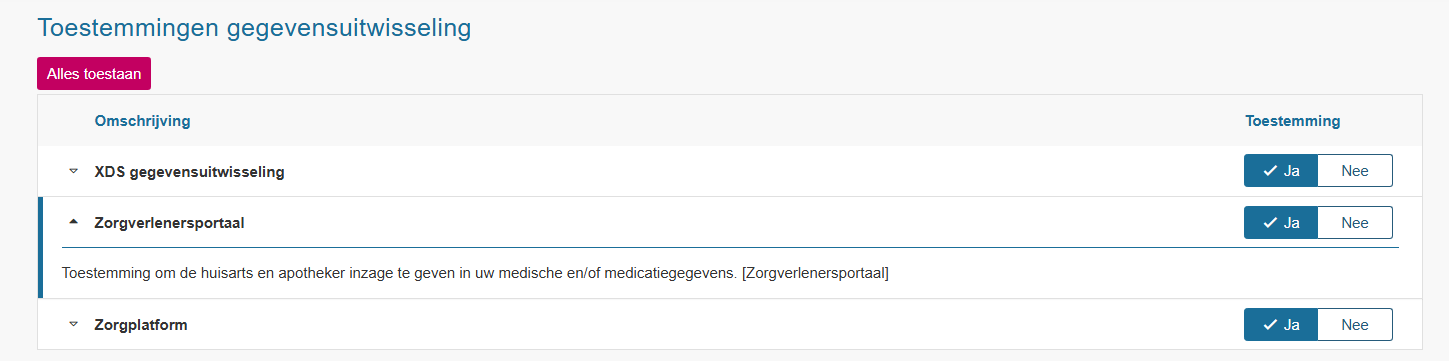 U geeft nu toestemming aan uw huisarts, specialist(en) in andere ziekenhuizen en uw apotheker om uw medische en/of medicatiegegevens in te zien.